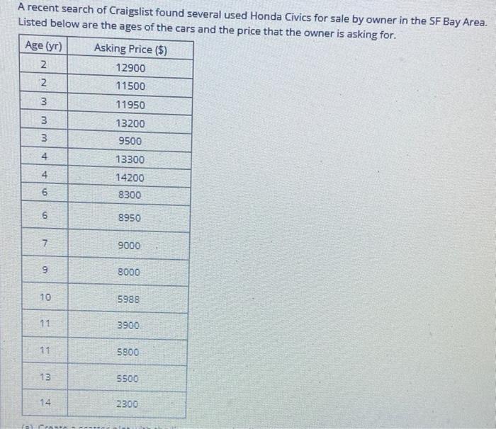 Solved A Recent Search Of Craigslist Found Several Used Chegg Com